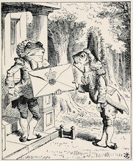 I could not find a colored version of the Tenniel picture, sadly. Please note that Grandfather Trout has misremembered the position of the letter. Little, Big has barely begun at this point. The lifting of the curse takes place 530 pages later in my edition, but offscreen, so to speak. Why write it out twice?